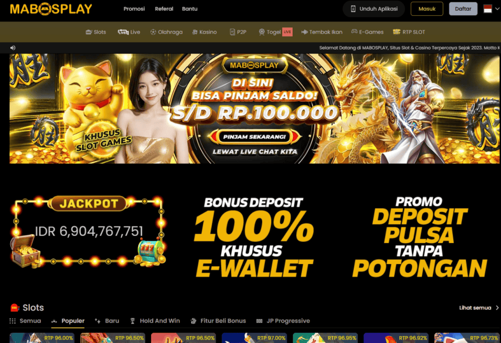 Platform ini menawarkan jackpot progresif yang bisa mencapai jumlah luar biasa. Selain itu, Mabosplay juga memberikan berbagai jenis bonus seperti bonus sambutan, cashback, dan reward bagi pemain setia.